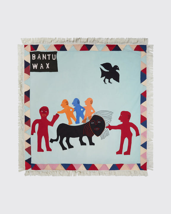 Introducing our hand-sewn Asafo flag beach blankets, a centuries-old craft still practiced today along the sun-drenched Cape Coast of Ghana. Bantu turned not to factory methods, but to three artisans in Ghana who make real Asafo with time-honoured modes of cotton cloth appliqué. Playing off of the customary characters and colours of classic Asafo flags, the blankets and totes feature a range of vibrant scenes and symbols, which will also be replicated across a series of screen-printed long-sleeve cotton tees and leather key chains, as well as be a recurring part of the Bantu universe going forward.