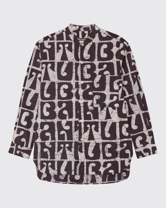 Long-sleeve hand block printed pyjama shirt, made from extra dreamy cotton. Bantu all over print log. Bantu all over print logo. To be worn in and out of bed.