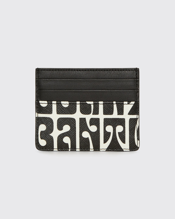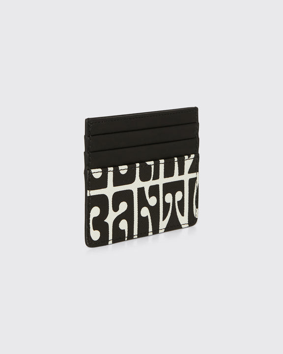 Black and White coated cotton canvas card wallet with a center compartment and three card slots for your credit cards, transport tickets and business cards. 4.3” x 2.8” x 0.6”. Made in Africa.