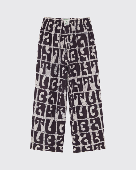 Hand block printed pyjama trouser, made from extra dreamy cotton. Bantu all over print logo. Bantu all over print logo. To be worn in and out of bed.