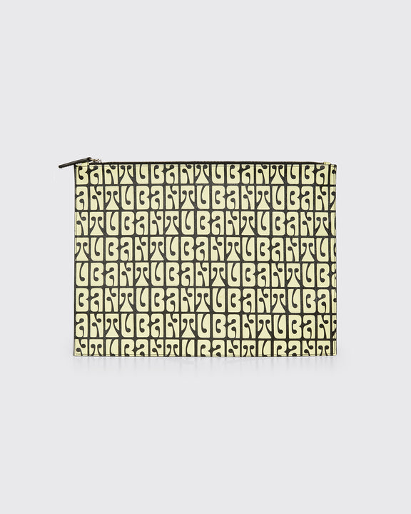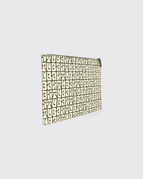 Black and Cream coated cotton canvas portfolio with zippered closure. 10.2” x 7.9” x 1”. Made in Africa.