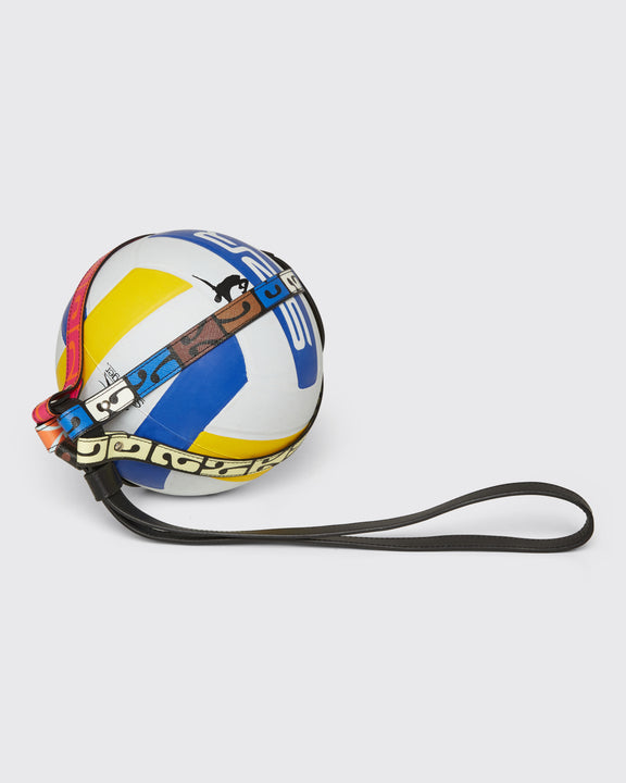 Multi-colored coated cotton canvas volleyball carrier with single shoulder strap. A simple yet functional carrier that’s ideal for travelling light with your favourite sports accessories.